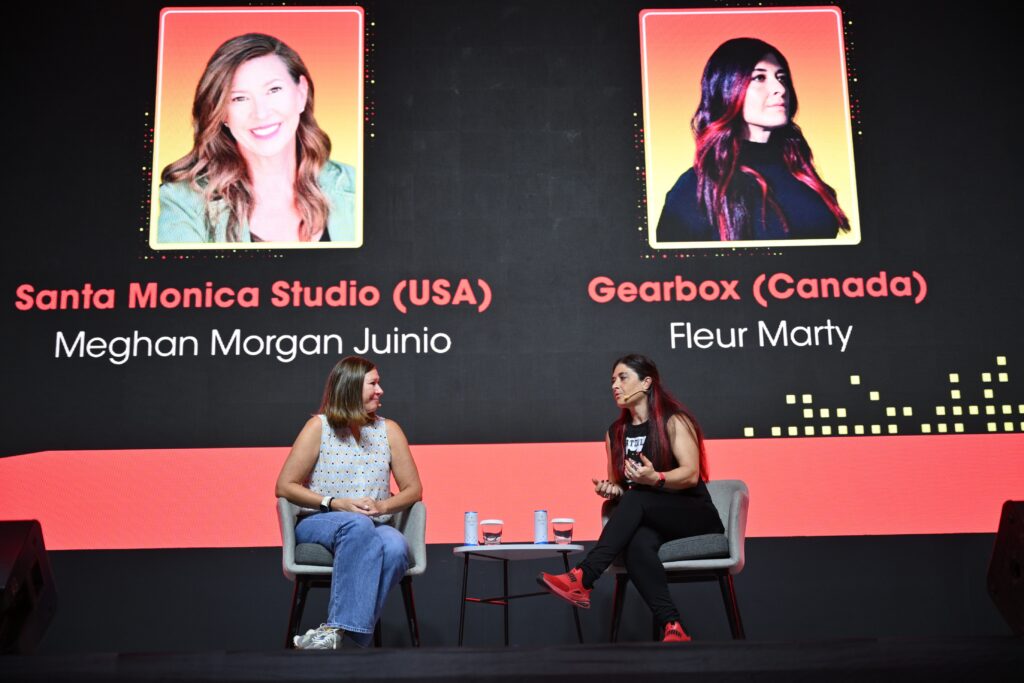 On the conference stage, Meghan Morgan Juinio (formerly Santa Monica Studio) and Fleur Marty(Gearbox) led a candid session on women shaping AAA games.