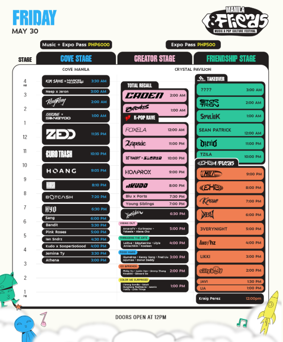 • Zedd returns to Manila after nearly three years, headlining the Music Night on May 30.