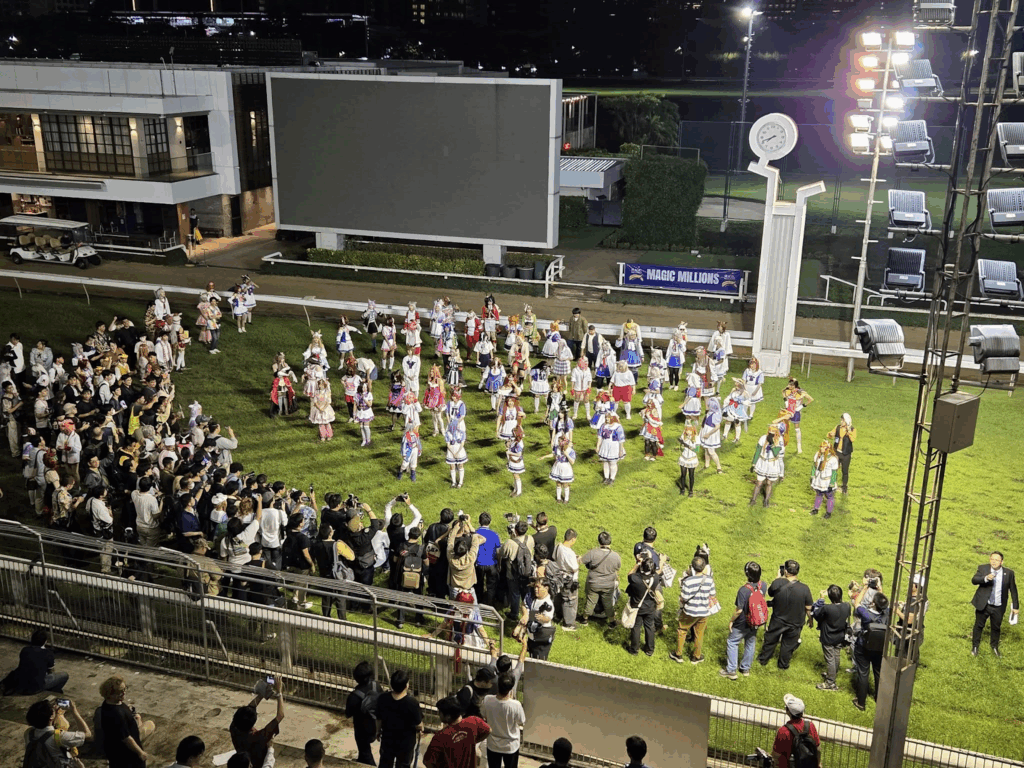 What followed afterwards with their community though wasn’t just a cosplay gathering at another anime convention but at an actual horse racecourse. In this photo taken by Aqlif, the community gathered around with their love for the franchise last August 2025.