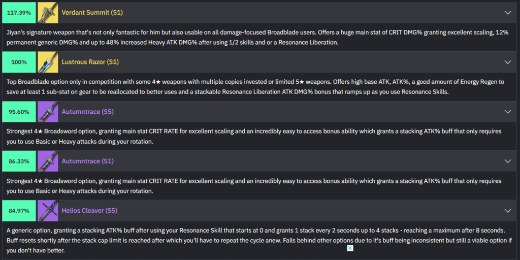 Best Weapons for Jiyan