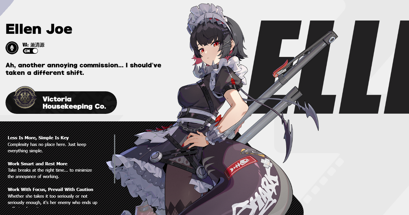 Welcome to our Zenless Zone Zero, Ellen Joe quick build guide! Zenless Zone Zero is an urban action game from HoYoverse (Genshin Impact, Honkai: Star Rail.) The story takes place in the near future, where a mysterious natural disaster known as the “Hollows” has occurred. A new kind of city has emerged in this disaster-ridden world known as “New Eridu”. This last ‘oasis’ has mastered the technology to co-exist with the Hollows, and is home to a whole host of chaotic, boisterous, dangerous and very active factions. As a professional ‘Proxy’, you will play a crucial role in linking the city with the Hollows.  All information from this guide came from Prydwen Institute and has been summarized into bite-sized info.
