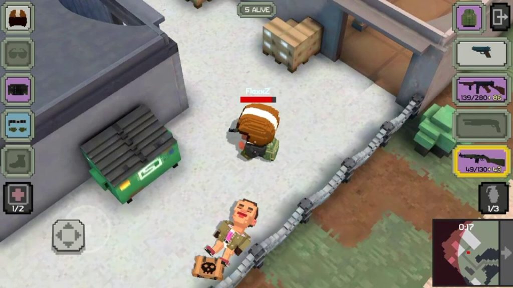 Grand Battle Royale, developed by GameSpire Ltd., features pixel graphics and blocky characters. Players roam a radioactive island, and as with other games in this genre, the objective is for players to survive the battlegrounds, improve their shooting skills, and develop new PVP tactics. Players are spread around the island unarmed and must find various weapons and items to eliminate opponents. Weapons include an assault rifle, pixel gun, smg, shotguns, and others.
