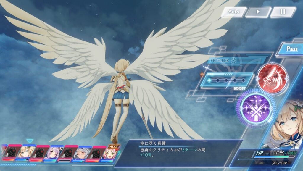“Angelica Aster” offers players an extremely powerful aerial 3D turn-based battle system. Angels fly in all directions across the sky, confronting gigantic divine beasts. The commands during battle change greatly depending on the job, so make full use of the unique jobs to lead the angels to victory.