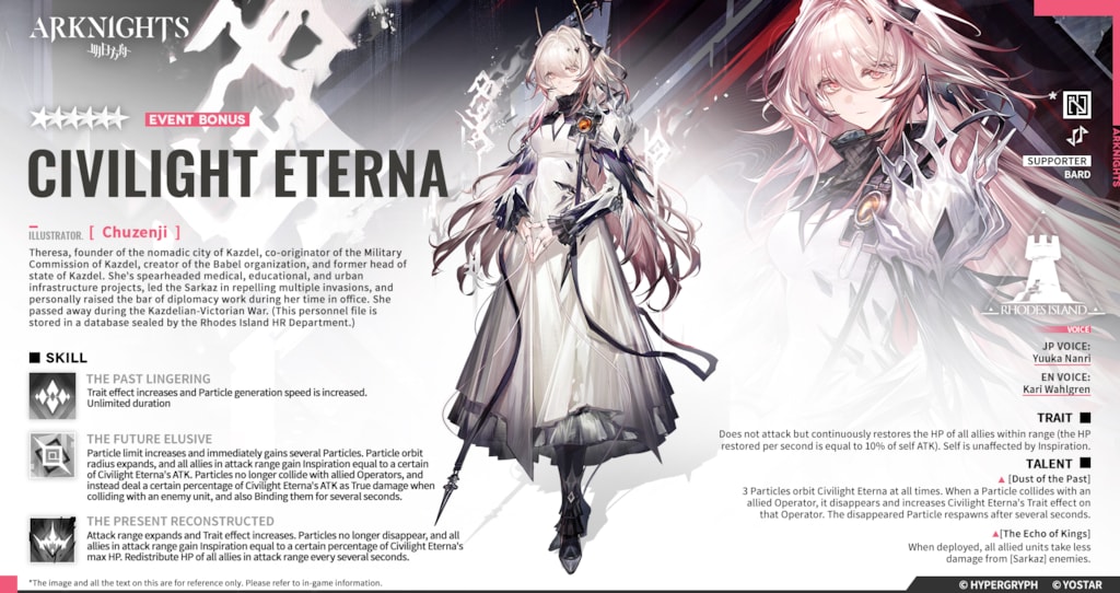 Additionally, by completing the Episode 14 “Absolved Will Be the Seekers” stages and “Hidden Front” missions, Doctors can unlock confidential recordings in ”Secret Place.” Achieving this will allow Doctors to obtain the 6-star Operator Civilight Eterna for free. Don’t miss out on these fantastic opportunities to elevate your gameplay!