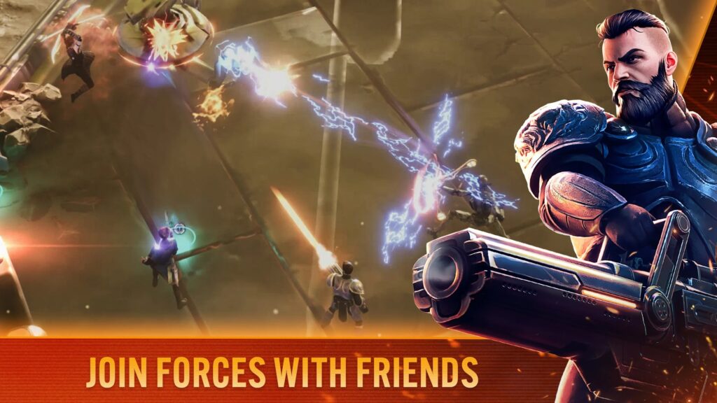 Expect fast‑paced top‑down action. Missions vary from epic battlefield skirmishes to focused assassination ops. You’ll use an evolving arsenal of melee, ranged weapons, skills, and abilities—just like a dungeon crawler with a sci‑fi twist. Play solo or squad up in four‑player online co‑op