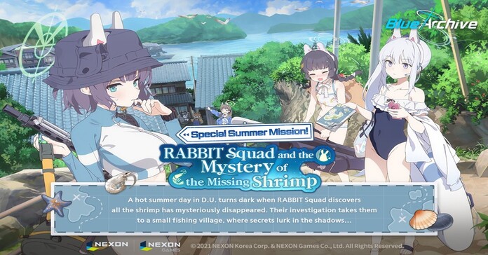 Armed with a knack for pixelated mayhem, new students Miyu (Swimsuit), Miyako (Swimsuit), and Saki (Swimsuit) have arrived on the crime scene of popular mobile RPG Blue Archive for the event story “Special Summer Mission! RABBIT Squad and the Mystery of the Missing Shrimp.” With the fresh update available today until Tuesday, Jan. 9, the RABBIT Squad’s story continues as they investigate a sudden shrimp shortage. The search takes them to Yatoura Village, where strange legends chill them to the bone.