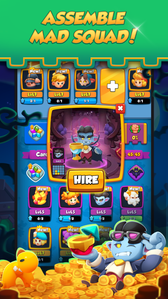 In Castle Duels, players must balance offensive and defensive tactics as they battle to destroy enemy castles while protecting their own. Using an innovative card-based system, players summon a variety of units — including mages, minotaurs, ghosts, and succubi — to engage in fast-paced, real-time combat. With 30 unique units to choose from, ranging from common to legendary, players can assemble personalized teams and develop strategies to outsmart their opponents.