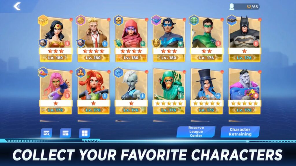 - Team Building: Collect, train, and upgrade your heroes and villains.