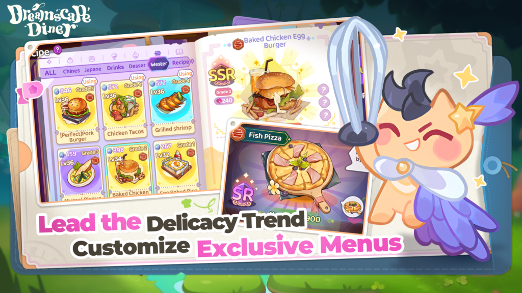 At the start, your diner sits in ruin. But don’t worry—you soon recruit colorful companions like the Frog Prince, Red Queen, and Inugami. Each brings unique personality and abilities. Train them, craft special recipes, and design furniture to match your dream-themed style.