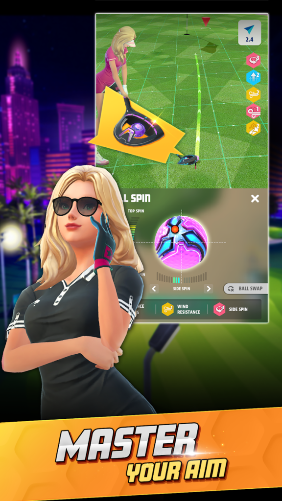 - Master Precise Shot Controls: Control your shots with advanced mechanics like power gauges, putter lie angles, and specialized shots. Whether it’s a sneaky shot or a rocket drive, every move is yours to strategize.