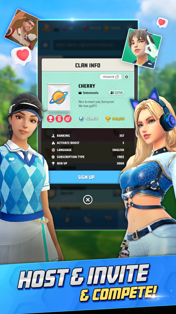 - Golf is better with friends. Join or create clans, complete missions together, and use real-time chat to build camaraderie. The new SwingChat feature lets you send and receive swings while playing, keeping the game social and fun.