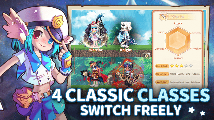 For “LaTale” veterans, the game brings back the four iconic classes: Warrior, Explorer, Knight, and Wizard. Each class offers 2 to 3 distinct weapons. Rally your friends and challenge classic bosses, reliving the adventures that made “LaTale M” special.