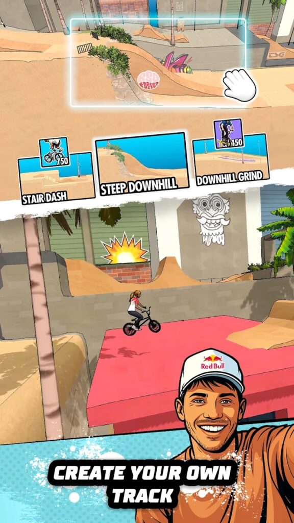 True to its roots, Red Bull Playgrounds includes official gear from industry-leading brands like Mongoose, BSD, and TSG. Customize your athlete with licensed clothing and equipment that looks and feels authentic. And if you’re feeling creative, the in-game track builder lets you design and share your own levels with the global player community.
