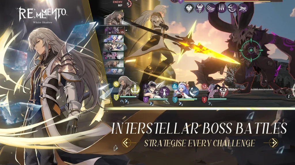 Combat in Rememento: White Shadow is built around an energy-generating mana system. Each attack fills your meter, allowing you to unleash powerful elemental combos using Fire, Water, Light, Forest, and Dark affinities. Players can craft strategies using character formations, affinities, and synergy skills, resulting in fast-paced, cinematic battles that look and feel alive.