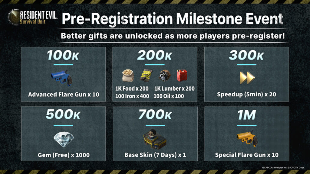 Aniplex Inc. (President: Atsuhiro Iwakami) today announced that pre-registrations for the upcoming mobile strategy game Resident Evil Survival Unit, co-developed with JOYCITY Corporation (CEO: Seong Won Cho), have surpassed 1 million users across Japan, Korea, North America, Europe, and other regions in Asia. (Note: Total includes combined pre-registration numbers from App Store and Google Play across multiple regions.)