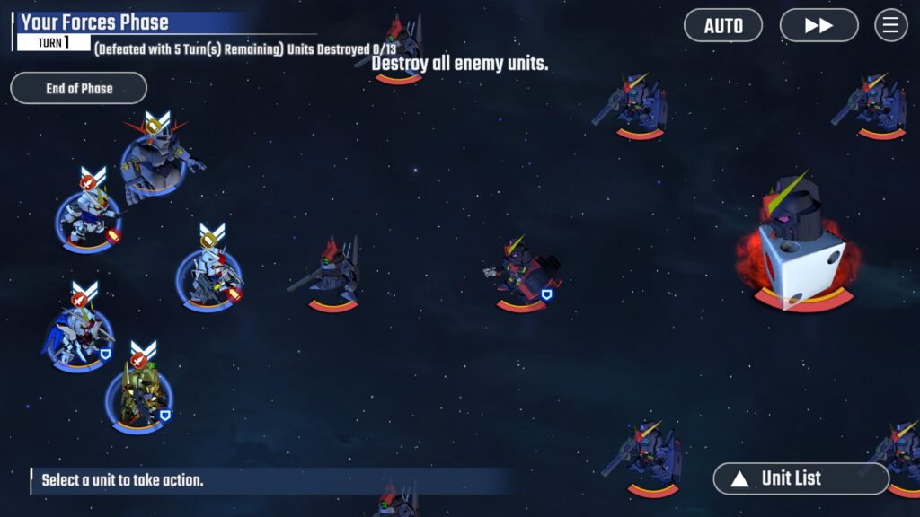 At launch, the game features over 500 Mobile Suits from 70 different Gundam works, including iconic series such as Mobile Suit Gundam, Mobile Suit Gundam SEED, Mobile Suit Gundam 00, and Mobile Suit Gundam: The Witch from Mercury. Players can form squads with their favorite characters and Mobile Suits, engaging in strategic turn-based battles across various scenarios.