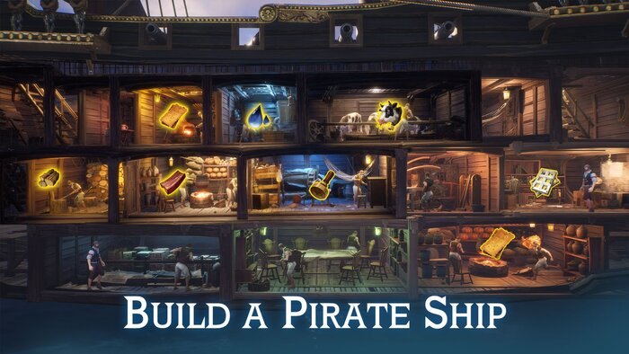 Your journey commences within Pirate’s paradise, nestled deep within the enigmatic Devil’s Seas. This realm teems with magic, hidden treasures, and limitless opportunities for daring exploits. As the Great Captain, your quest is crystal clear: unfurl those sails, venture into uncharted waters, construct your pirate’s cabin, amass a formidable fleet, tailor your flagship, face formidable foes, and embark on an unending quest for that elusive treasure.
