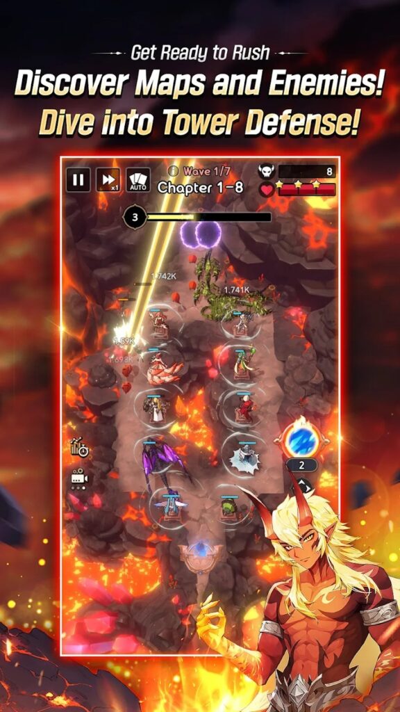 In Summoners War: Rush, players can enjoy continuous progression even when offline. Monsters engage in battles autonomously, gaining experience and resources over time. The game also features strategic tower defense elements, requiring players to deploy Monsters and Skill Cards tactically to fend off waves of enemies.