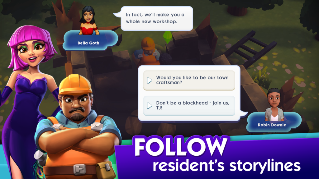 Part of The Sims Labs program, which began in August, the game explores experimental ways to play The Sims. Set in the town of Plumbrook, Town Stories allows players to interact with residents, build facilities, and customize their experience with new features not seen in previous titles.