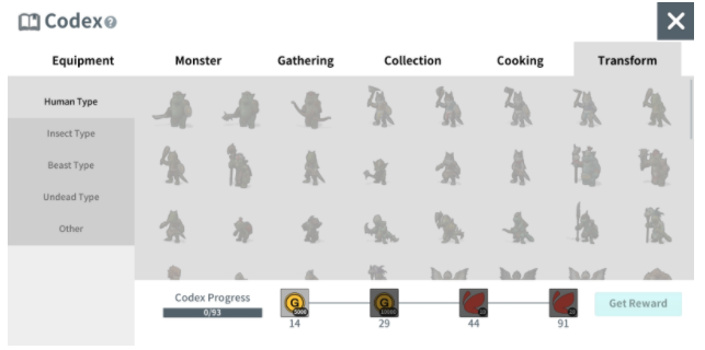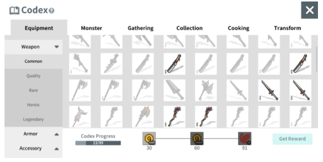- Codex System – The Codex is a collection of information on monsters, equipment, and so forth according to each region. Increase the Codex’s completion to obtain Codex Collection Rewards. Access and view the Codex by tapping the “Codex” icon in the top-right menu of the main screen.