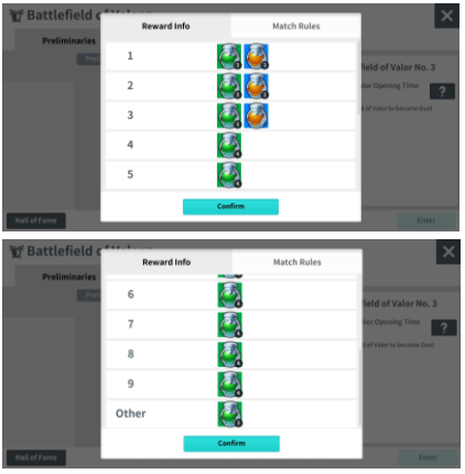 - Battlefield of Valor – This PvP content takes place every Sunday. Your Duel Arena Rank must be within the TOP 100 to participate, and Finals are held after concluding with the Preliminaries. Only adventurers within rank 100 in the Duel Arena can participate in the Battlefield of Valor.