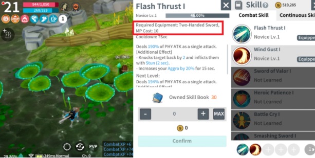 - Combat Skills – Combat Skills are basically the active skills that you can cast or execute. Tap the skill then tap the desired slot at the bottom to place the skill in the slot.