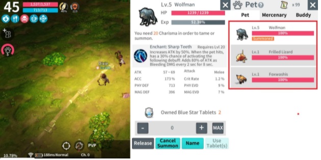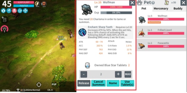 Battle alongside your pet to obtain XP and increase the pet’s own level. Use Blue Star Tablets for even quicker pet growth.
