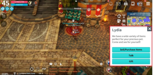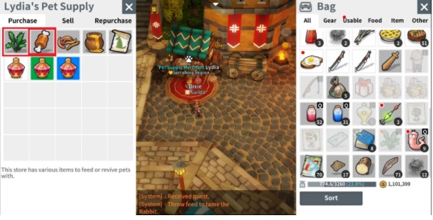 “Pet Feed” can be purchased from a Pet Supply Merchant. Make sure you have reached level 45 first in order to purchase or sell items from Pet Supply Merchants like Lydia.