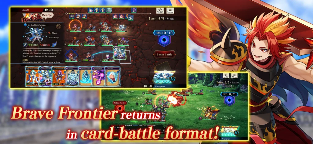 Brave Frontier Versus offers fast, five-turn battles where each match consists of up to six units on the field. The goal is to build strong synergy between cards, execute strategy quickly, and enjoy tight matches that remain exciting even for newcomers. The game retains signature Brave Frontier mechanics like Brave Bursts, and adds new features such as Manifestation Cards drawn during the 3rd and 5th turns with enhanced stats and special abilities.