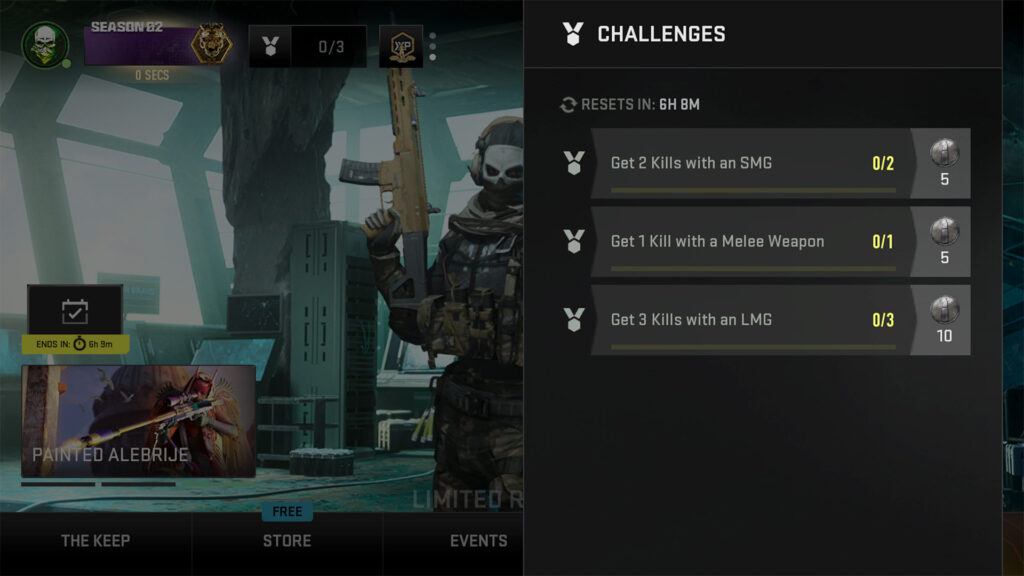 To access the Challenges Menu in Call of Duty: Warzone Mobile, tap the medal icon located at the top left corner. At launch, three Daily Challenges are available. These challenges resemble those in MWIII and Call of Duty: Warzone, offering rewards such as Arsenal Coins, used in the Arsenal Store to unlock weapons or Aftermarket Parts. Additionally, any Experience Points (XP) earned by completing challenges in Call of Duty: Warzone Mobile contribute to Player Progression in Modern Warfare III and/or Call of Duty: Warzone, and vice versa, thanks to cross-progression.
