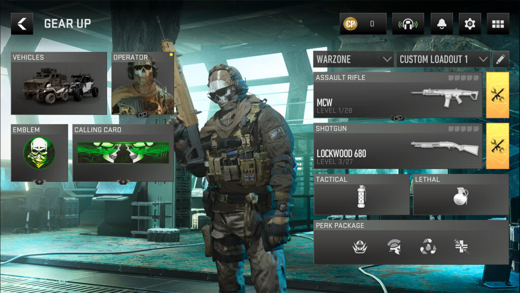 The Gear Up Lobby in Call of Duty: Warzone Mobile is an extension of the pre-match Lobby where you prepare your Operator for Battle Royale and Multiplayer combat. Here, you can customize every aspect of your Operator’s functional equipment and appearance using items you’ve already unlocked, making everything fully interchangeable.