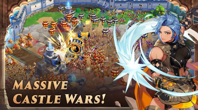 The game features large-scale, real-time, immersive siege wars across land and air. Several game modes will be available for all players to enjoy including Single Player stages, World (Field) and Capturing, Castle War, Server vs. Server War, Story Chapters and Territory Expansion, and Territory Customization. Lead multiple troop types to win battles such as Infantry, Archers, Cavalry, and Combat Engineers. Ranged archers and air units add a new strategic component to the game and can turn the tide of the war. Long-range combat allows players to attack across rivers, while air units are capable of crossing tall mountain ranges.