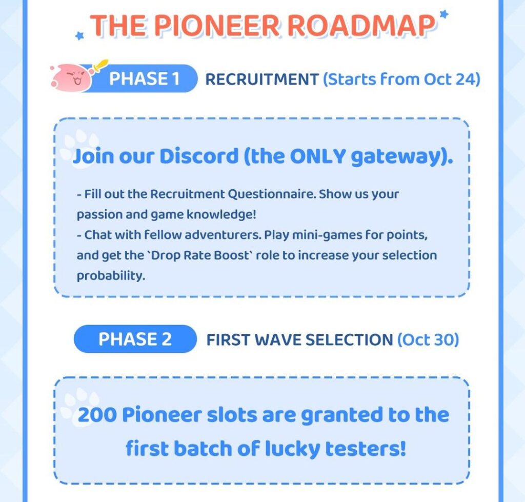 The game’s official Discord will be the only sign-up portal for the pilot test, and recruitment will begin on October 24. To be eligible for a testing slot, interested players must interact with the community and complete a recruitment questionnaire.