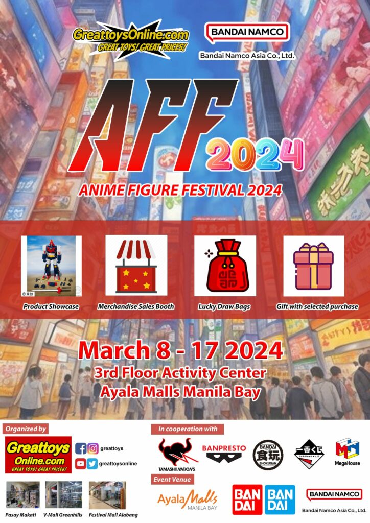 Manila, Philippines – Philippines’s premier toys and sports superstore GreattoysOnline.com is bringing back its Anime Figure Festival; a Bandai Namco Cross Event featuring their toy and collectible brands such as Tamashii Nations, Banpresto, Shokugan, Ichiban Kuji, and Megahouse. The Pop-up Shop can be found on the 3rd floor of the Activity Center in Ayala Malls Manila Bay, Parañaque City from March 8 to 17, 2024.
