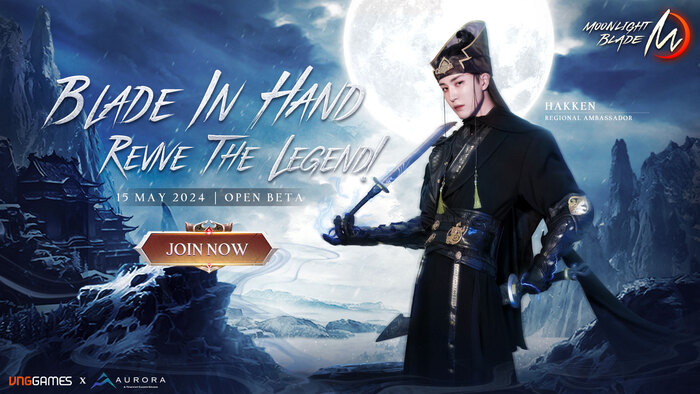 Hakken’s debut single “SWORD DANCE” and its accompanying music video are set to launch alongside the mobile game “MOONLIGHT BLADE M” on May 15th, across all platforms in Southeast Asia!