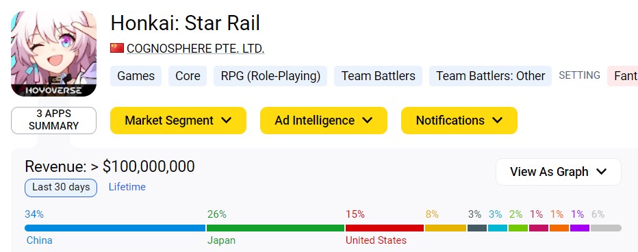 During its inaugural week, “Honkai: Star Rail” generated an astounding $42 million in revenue, a staggering feat for a game in its infancy. The game has delivered on its promises, providing an immersive and engaging experience that has resonated deeply with players. The overwhelmingly positive reviews from early adopters have acted as a catalyst, further driving interest and attracting a growing number of enthusiasts. Notably, China, Japan, and the USA emerged as the top three consumer markets, contributing a substantial 66% of the game’s total revenue.