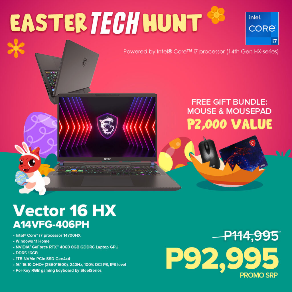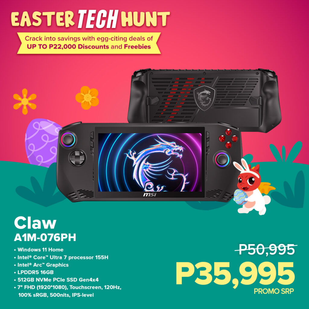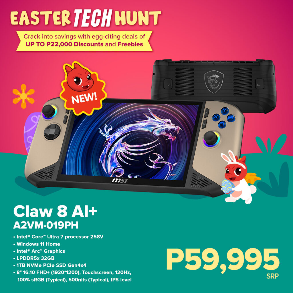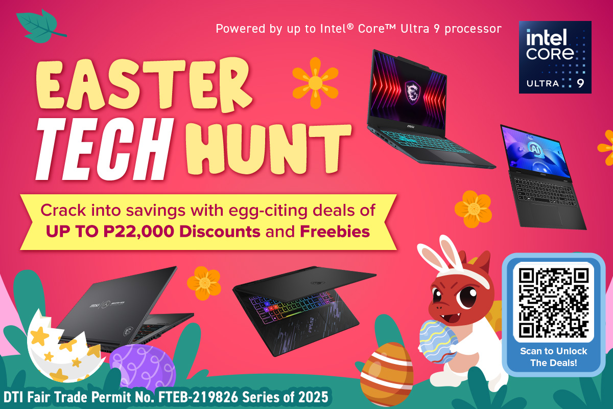 Get ready for an egg-citing Easter Tech celebration as MSI brings you incredible deals on selected laptops and handheld PCs! Whether you’re a hardcore gamer or looking to boost your productivity, now’s your chance to level up your tech with cutting-edge performance and unbeatable savings—up to P22,000 in discounts and exclusive freebies!