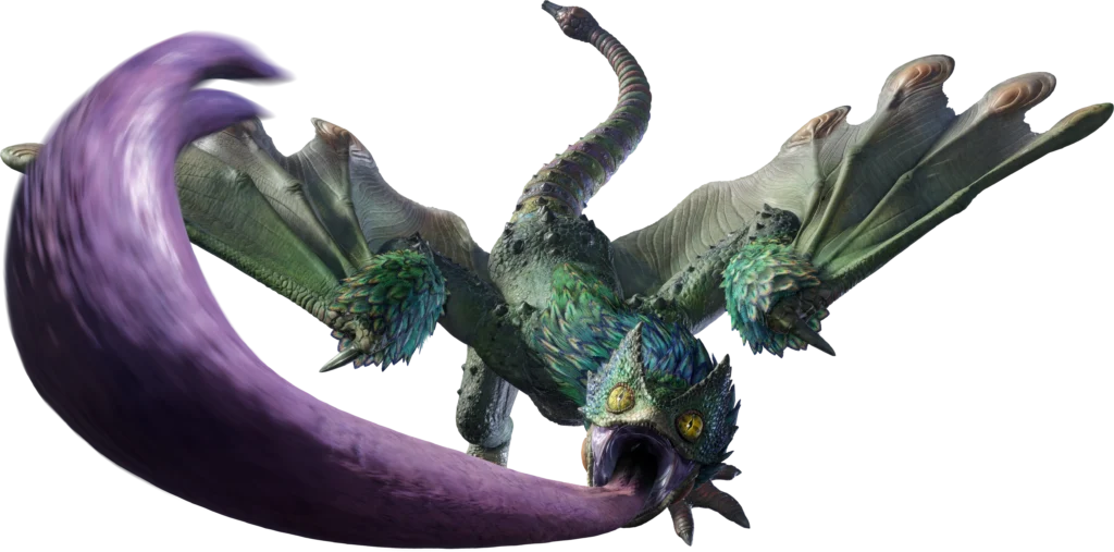 Pukei-Pukei also shows up in the roster: a slim wyvern with poison attacks, tongue-based strikes, and chameleon-style camouflage. It’s tricky, nimble, and unpredictable.
