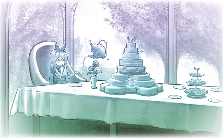 “Alice dear, you are finally here! I have been waiting for you. Now come, join my tea party!” With a graceful gesture, the red queen led Alice inside to her beautifully decorated garden with the tea table in the center.