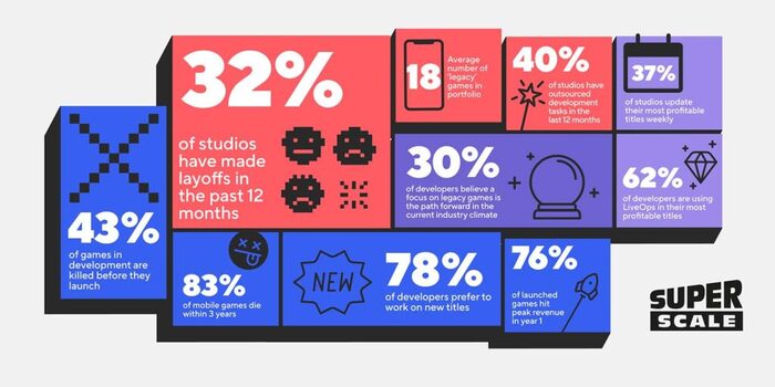 In a recent revelation, SuperScale, the mobile game revenue growth engine, has exposed a stark truth about the industry. The “Good Games Don’t Die” white paper, released on November 22, 2023, reveals that a significant 83% of launched mobile games meet their demise within three years, with an additional 43% terminated during development.