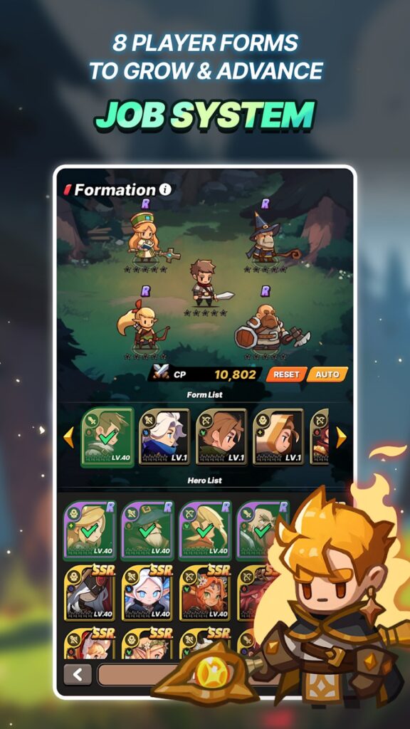 A core highlight of PEPP Heroes is its “Real-time 8-Player Combat” system, where multiple players jump onto the field simultaneously to battle monsters and bosses. Players can collect and form teams from over 50 unique heroes, including more than 20 SSR-grade characters. The strategic depth is bolstered by a system of 8 distinct jobs and 4 classes, allowing for a wide variety of team synergies to tackle the game’s 150+ side quests and intense main storyline.