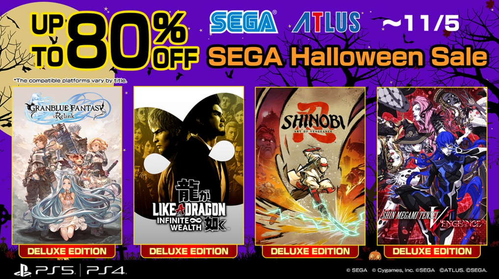 The SEGA Halloween Sale is currently underway on the PlayStation™Store. For a limited time, select PlayStation®4 and PlayStation®5 titles will be available at bargain prices.