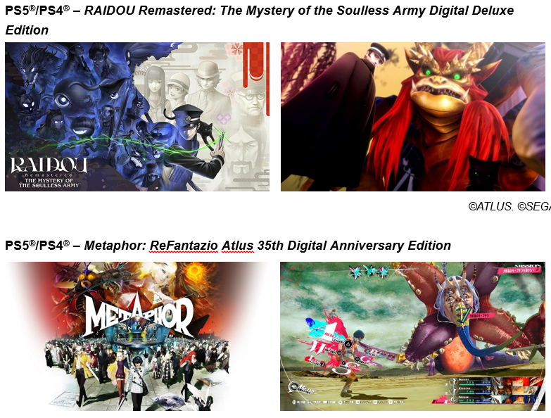 Deals on popular ATLUS titles are also available. Don’t miss this chance to get 25% off the Digital Deluxe Edition of RAIDOU Remastered: The Mystery of the Soulless Army, or save 50% on the Atlus 35th Digital Anniversary Edition of Metaphor: ReFantazio—winner of the Grand Award at the Japan Game Awards 2025!