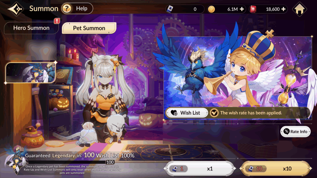 The Pet Wish Summon allows players to select the pet they want. Summoning 100 times guarantees the chosen pet. Use of this system is limited to the Exclusive Summon Voucher, obtainable via events or content rewards.