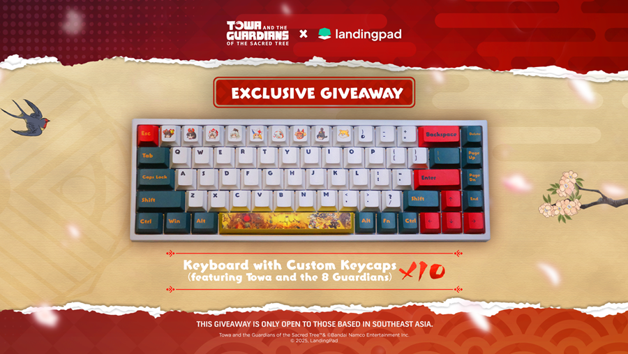 Bandai Namco Entertainment Asia today announce an exclusive giveaway campaign with LandingPad in celebration of the brand-new roguelite Towa and the Guardians of the Sacred Tree’s 2-month release. The giveaway is open to those based in Southeast Asia, Taiwan and Hong Kong, and gives participants a chance to win a set of Towa and the Guardians of the Sacred Tree keycaps – featuring Towa and the 8 Guardians, along with a compact keyboard.