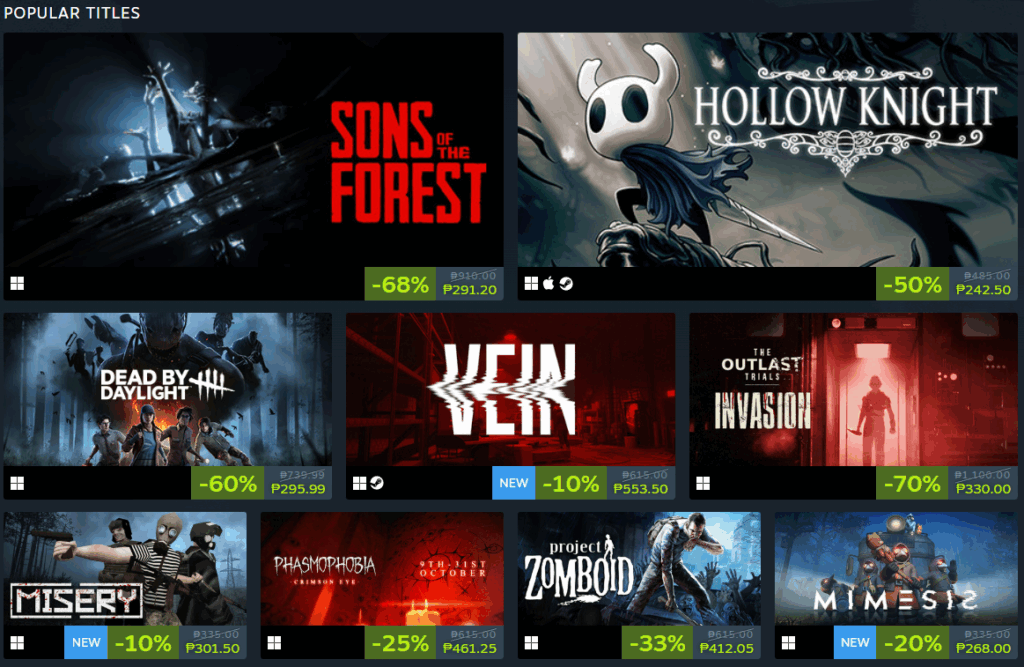 • Horror titles discounted as much as 90% off.