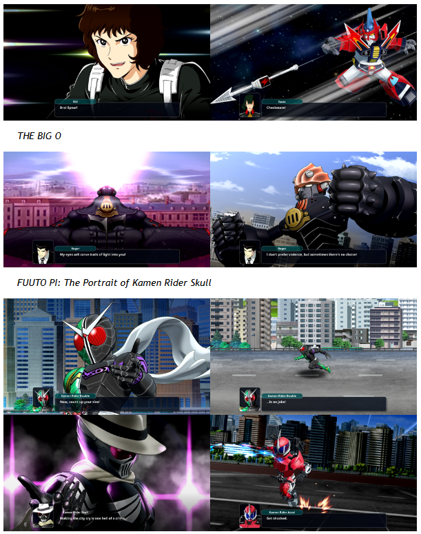 DLC 1: Contract from the Darkness includes three works, GALAXY CYCLONE BRAIGER, THE BIG O, and FUUTO PI: The Portrait of Kamen Rider Skull, and contains additional area missions and extra playable units related to the three works. Users who have purchased the Collector’s Edition, Digital Ultimate Edition, Digital Deluxe Edition or DLC Pack 1 & 2 set, will be able to gain early access to DLC 1, starting Wednesday, 19 November.