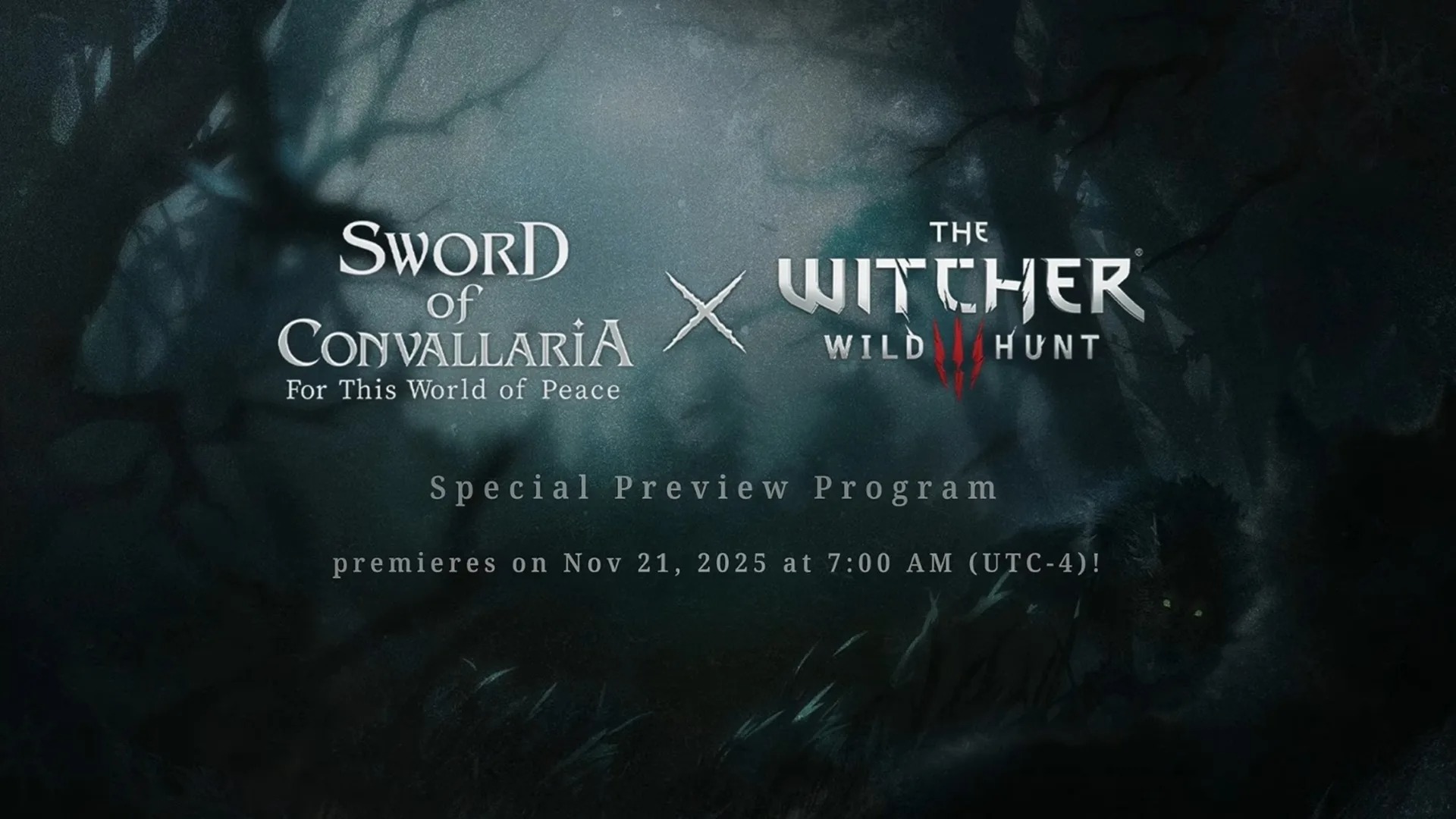 The Sword of Convallaria ╳ The Witcher 3: Wild Hunt Special Preview premieres on Nov 21, 2025 at 7:00 AM (UTC-4)! Tune in for the first reveal of exclusive collaboration content, don’t miss it!