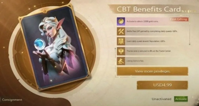 - Closed Beta Benefits Card: A real-money purchase granting players in-game gold instantly, stirring concerns about a potential pay-to-win advantage.