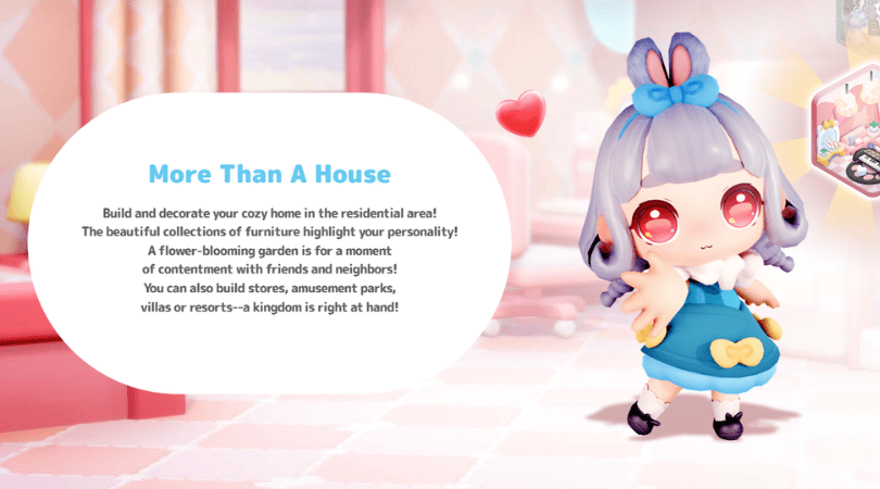 Players can also select a piece of land and build their dream homes. There is a space at the door to park their spacecraft or hoverboard. The dazzling array of detail-filled furniture is not just a decoration but has practical functions. Players can enjoy a cozy afternoon tea party in the courtyard on a warm afternoon! With regards to building in the virtual world, there are multiple options available. Apart from building their personal home, they can also explore other possibilities. They have the choice to run a shop, create an amusement park to become the entertainment overlord, or establish a large villa area or resort to create their own ideal kingdom.